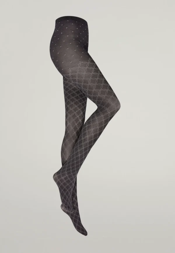 Die Cotton Tights von Wolford haben ein verspieltes Punktmuster und geometrische Rauten auf den Beinen. Sie bestehen aus einer Baumwollmischung mit Elasthan, Baumwolle und Polyamid. Durch das matte Finish verbinden sich beide Muster zu einem harmonischen Gesamtbild. Die 90-Denier-Mode-Strumpfhose mit gestricktem Bund ist perfekt für kältere Tage.