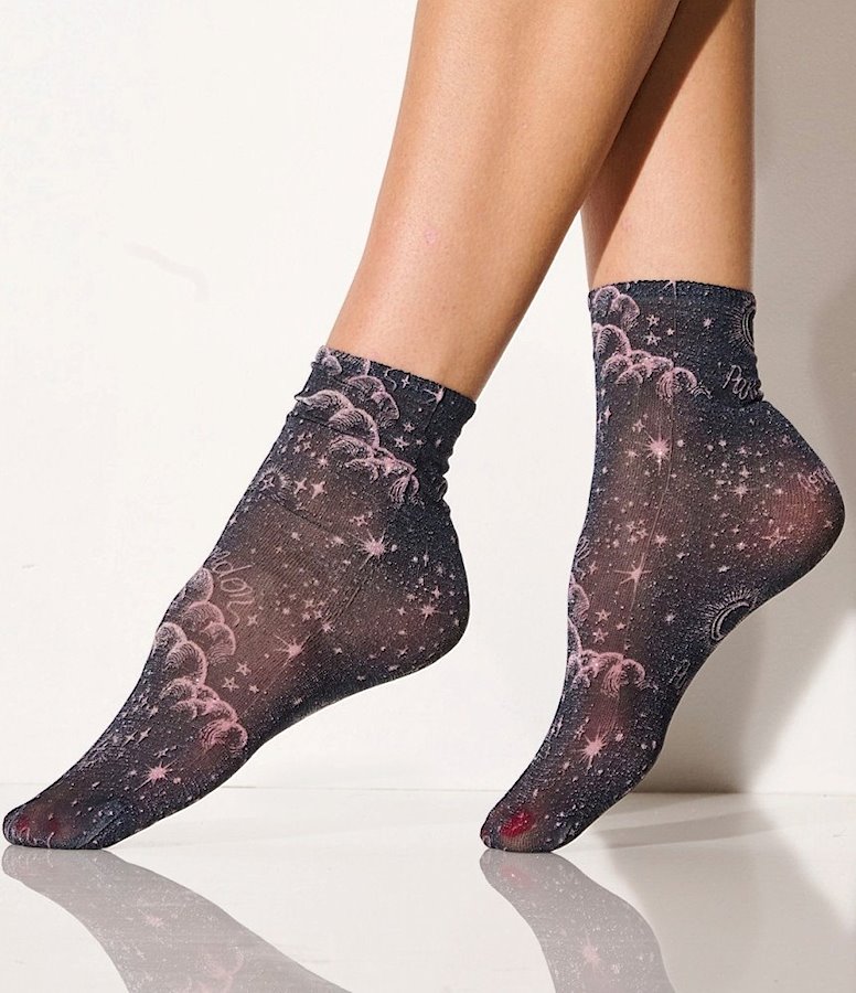 Ein kleines Detail mit großer Wirkung: Diese Galaxy-Socken bringen kosmischen Charme in deinen Alltag. Das feine Sternenbild und die Wolken-Optik machen sie zu einem außergewöhnlichen Hingucker – bequem und stylisch zugleich.