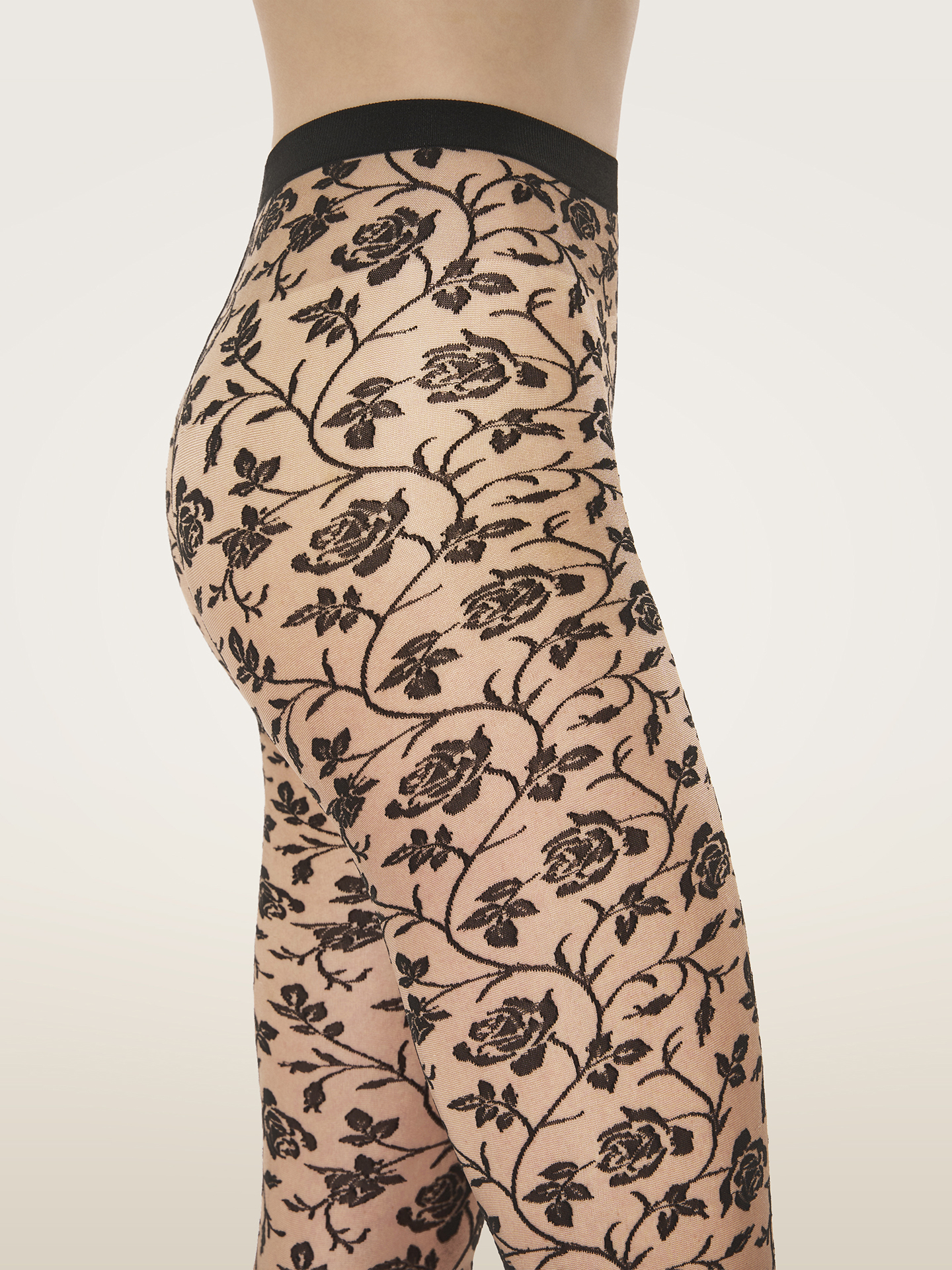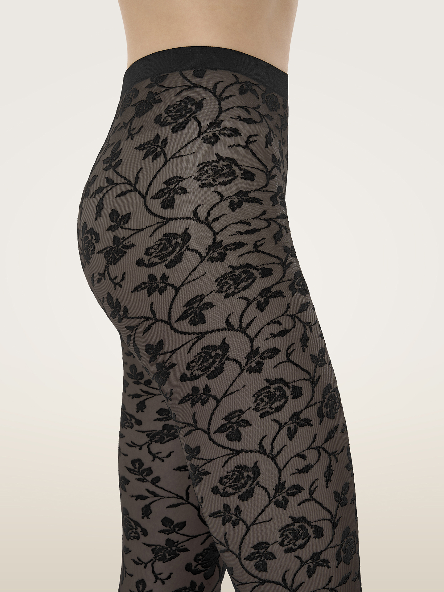 Diese Strumpfhose mit zartem Rosenmuster vereint romantische Ästhetik mit moderner Innovation. Die nahtlose Silhouette kombiniert transparente und blickdichte Partien zu einem durchgängigen, floralen Design – für einen femininen, selbstbewussten Auftritt. Ein weich angestrickter Bund und der Einsatz sorgfältig ausgewählter, nachhaltiger Farbstoffe unterstreichen Wolfords Anspruch an Komfort und Umweltbewusstsein.