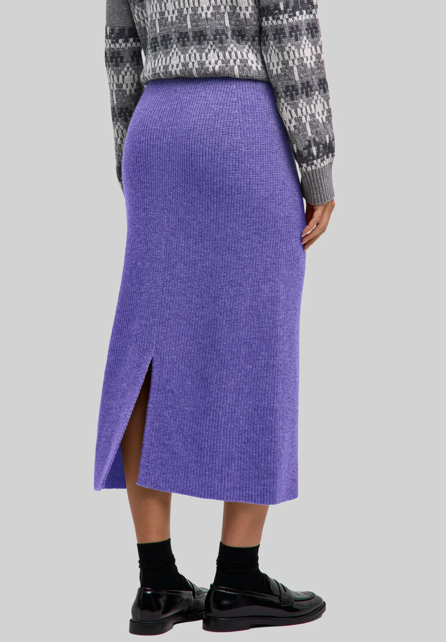 Der gestrickte Midi-Rock begeistert mit feiner Rippstruktur, femininer Passform und angenehmem Tragekomfort. Die ausdrucksstarke Farbe macht ihn zu einem stilvollen Begleiter für moderne Looks.